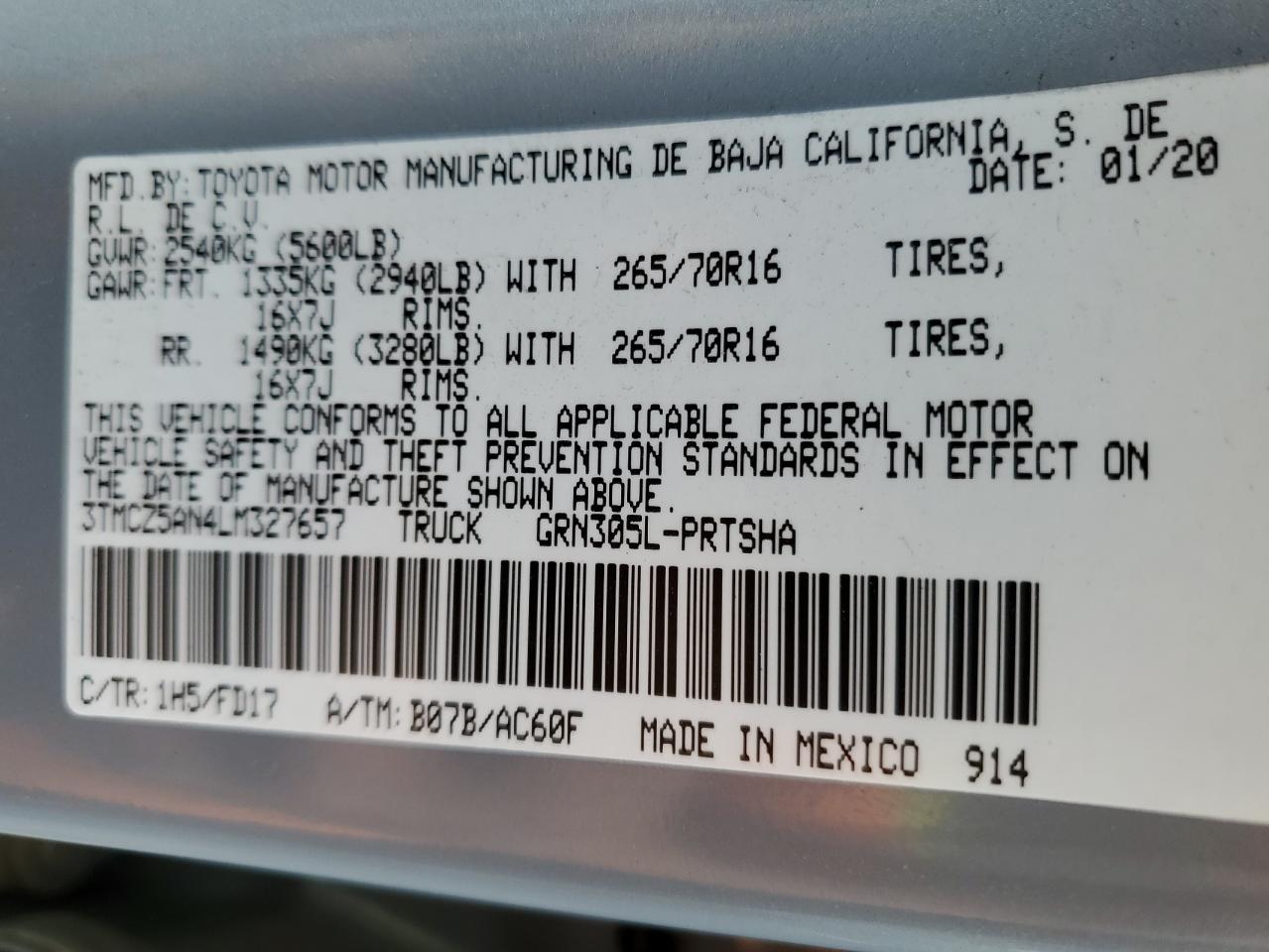 2020 TOYOTA TACOMA SR5