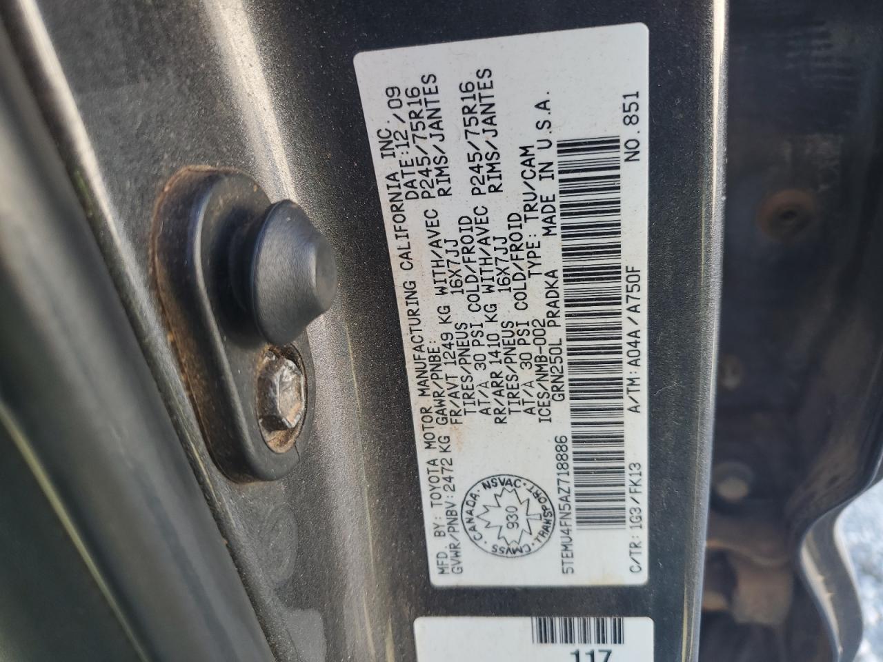 TOYOTA TACOMA 4.0 2010 р.в., 4x4 з заднім приводом (5TEMU4FN5AZ718886) з США