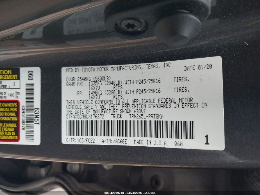 TOYOTA TACOMA 2.7 2020 р.в., (5TFAX5GN8LX176272) з США