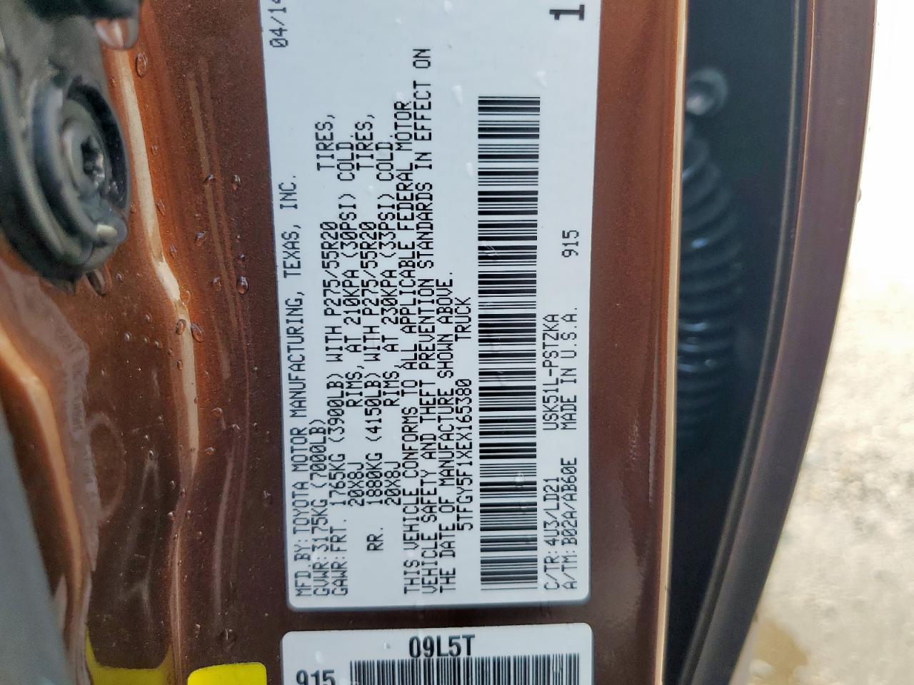 2014 TOYOTA TUNDRA 1794 5.7L V8