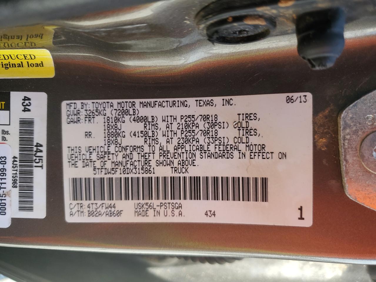 TOYOTA TUNDRA 5.7 2013 р.в., 4x4 з заднім приводом (5TFDW5F10DX315861) з США