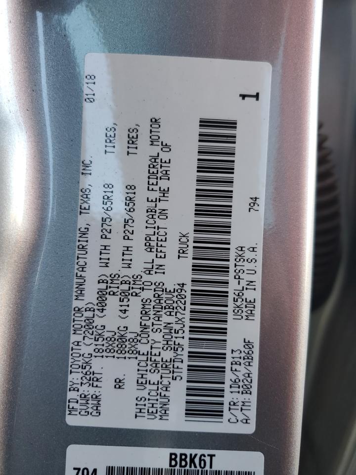 TOYOTA TUNDRA 5.7 2018 р.в., 4x4 з заднім приводом (5TFDY5F15JX722094) з США