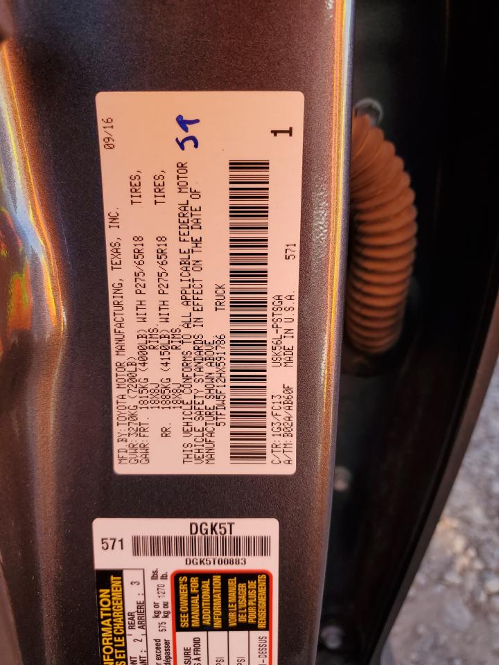 TOYOTA TUNDRA 5.7 2017 р.в., 4x4 з заднім приводом (5TFDW5F12HX591786) з США
