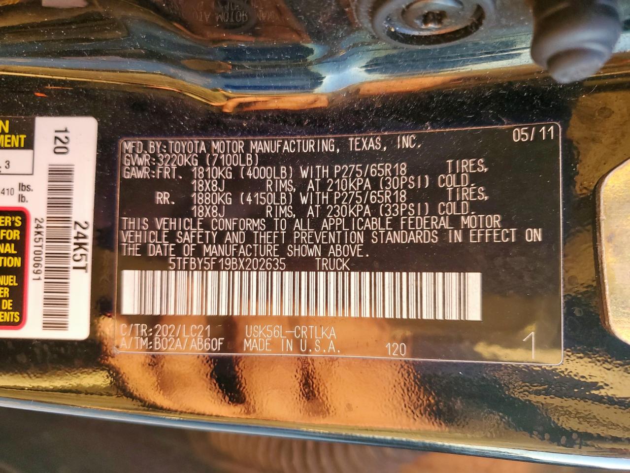 TOYOTA TUNDRA 5.7 2011 р.в., 4x4 з заднім приводом (5TFBY5F19BX202635) з США