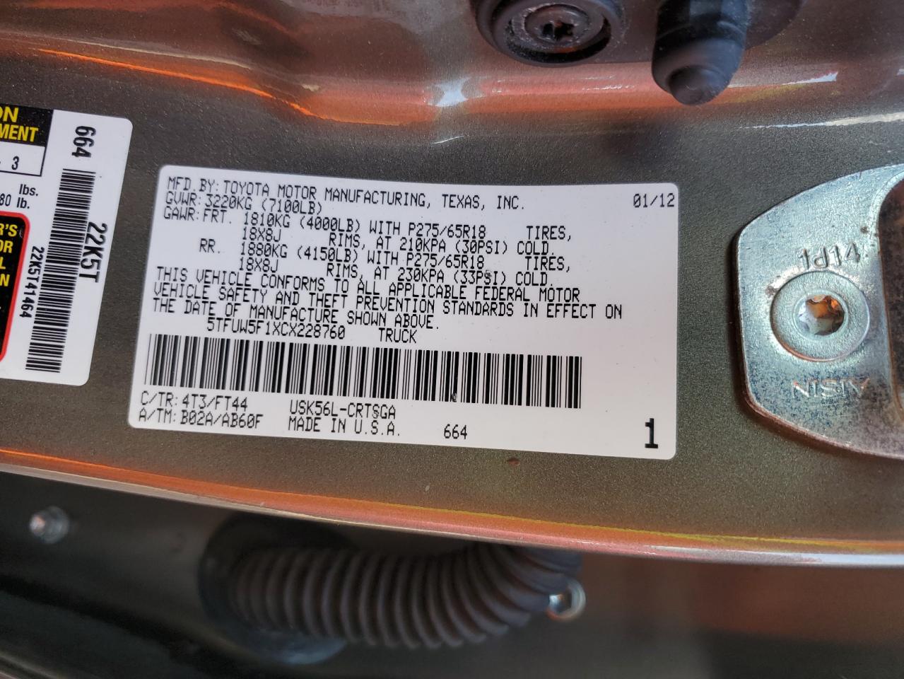 TOYOTA TUNDRA 5.7 2012 р.в., 4x4 з заднім приводом (5TFUW5F1XCX228760) з США