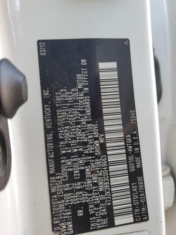 TOYOTA VENZA 3.5 2012 р.в., (4T3ZK3BB3CU049663) з США