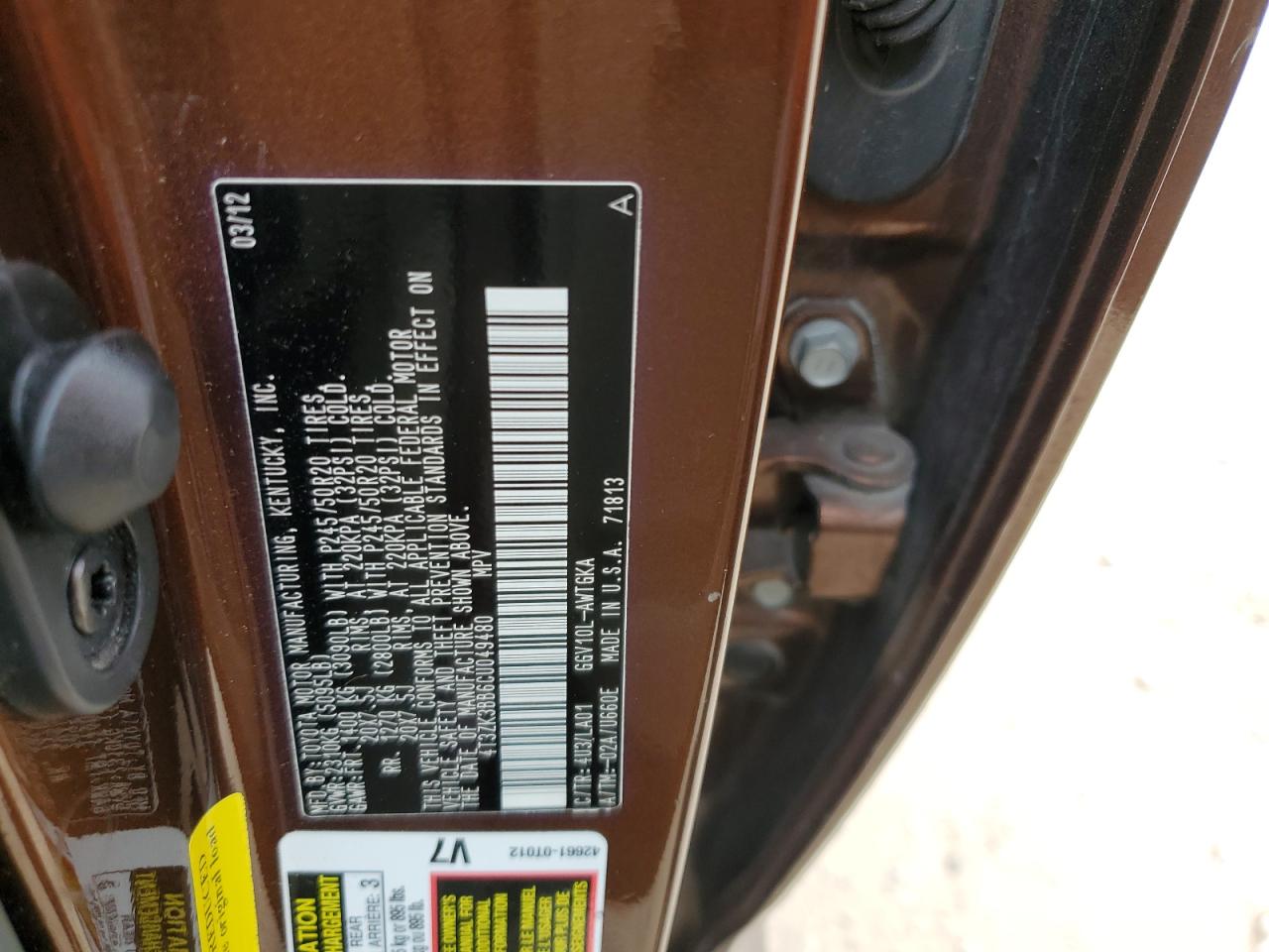 TOYOTA VENZA 3.5 2012 р.в., (4T3ZK3BB6CU049480) з США