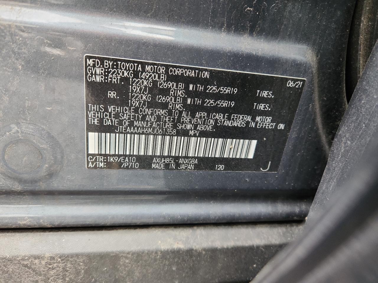 TOYOTA VENZA 2.5 2021 р.в., Повний привід (JTEAAAAH6MJ061358) з США
