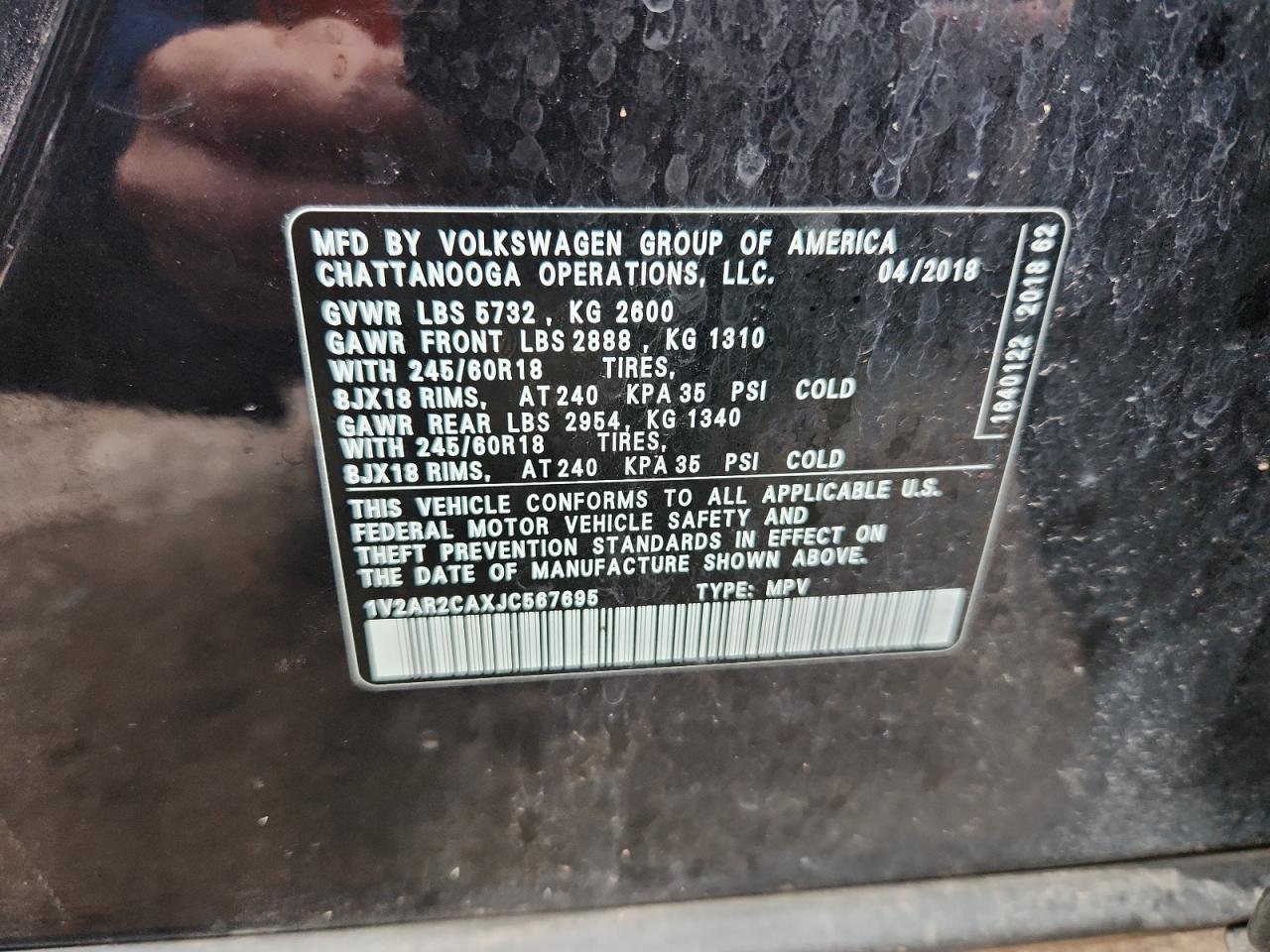VOLKSWAGEN ATLAS 3.6 2018 р.в., (1V2AR2CAXJC567695) з США