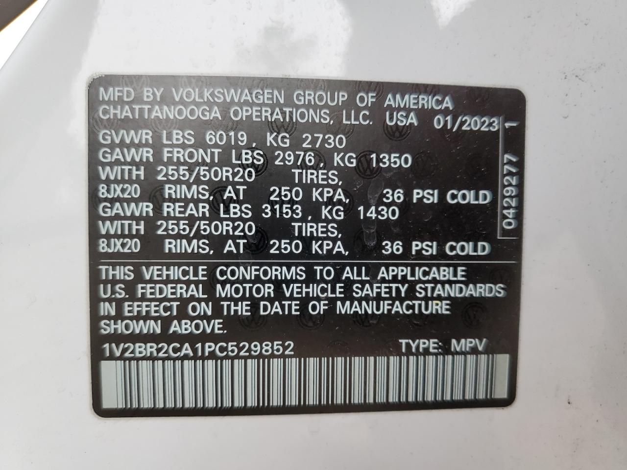 VOLKSWAGEN ATLAS 3.6 2023 р.в., Повний привід (1V2BR2CA1PC529852) з США