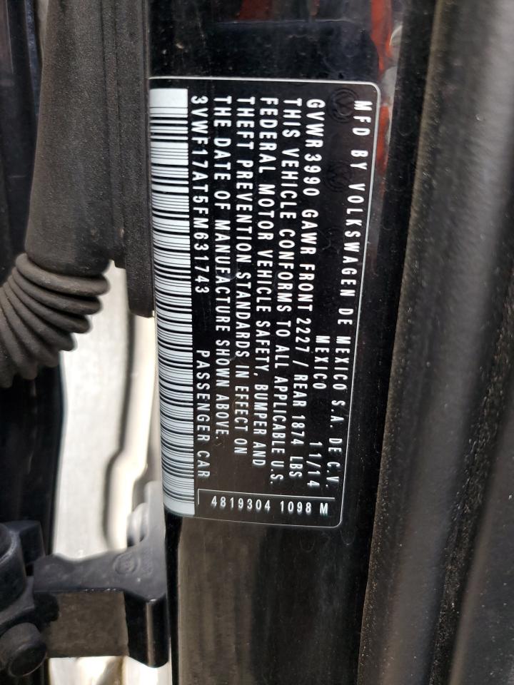 Колір ЧорнийЦиліндри 4VIN 3VWF17AT5FM631743Стан НевідомоУшкодження Передня або задня