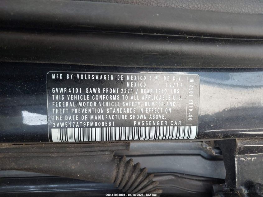 VOLKSWAGEN BEETLE 1.8 2015 р.в., Передній привід (3VW517AT9FM808581) з США