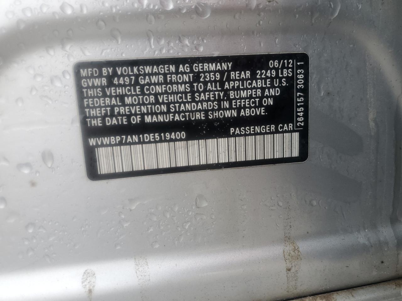 Колір СрібнийЦиліндри 4VIN WVWBP7AN1DE519400Стан НевідомоУшкодження Передня або задня