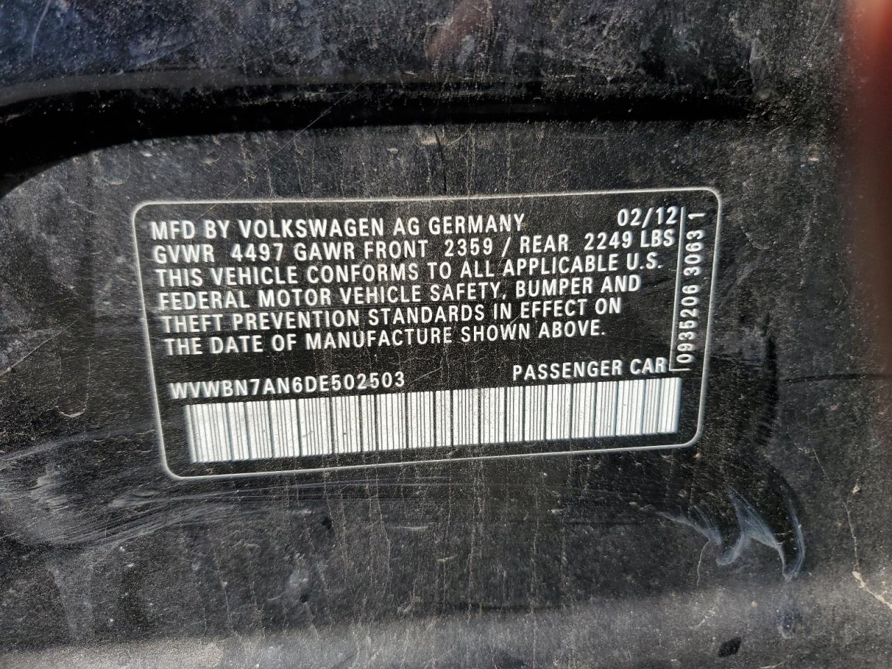 VOLKSWAGEN CC 2.0 2013 р.в., (WVWBN7AN6DE502503) з США