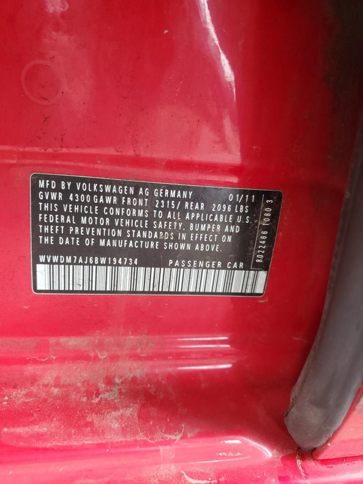 VOLKSWAGEN GOLF 2.0 2011 р.в., (WVWDM7AJ6BW194734) з США