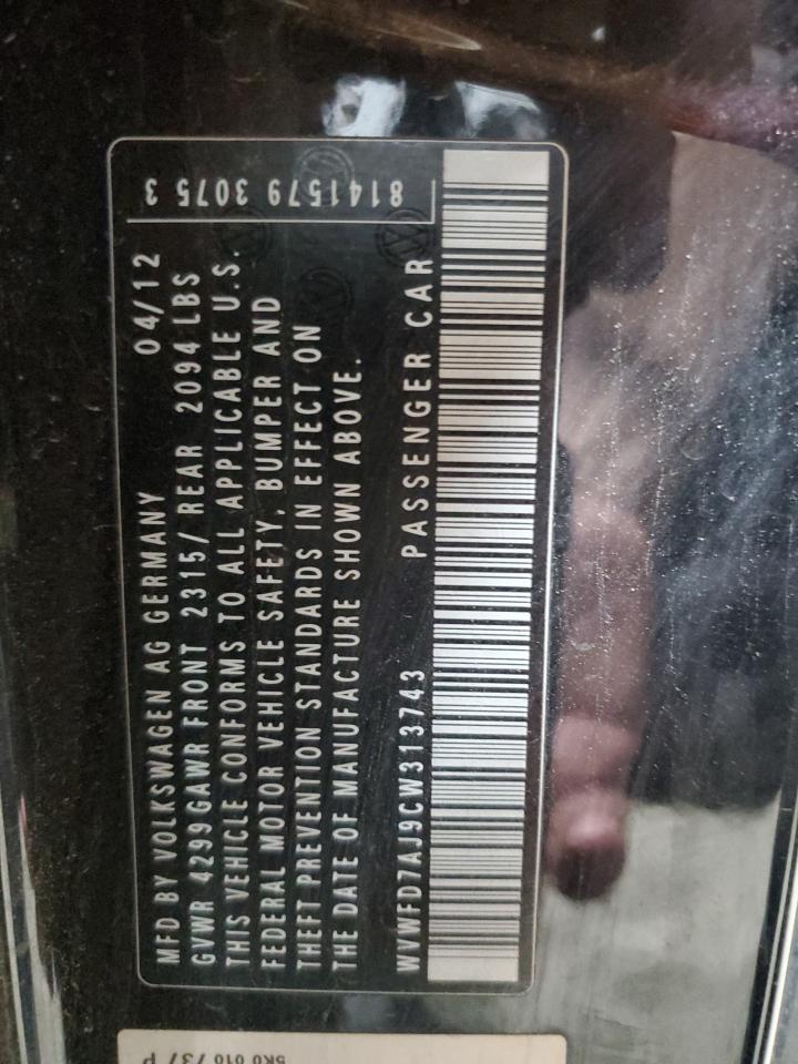 Колір ЧорнийЦиліндри 4VIN WVWFD7AJ9CW313743Стан НевідомоУшкодження Передня або задняДата аукціону 2025-11-11