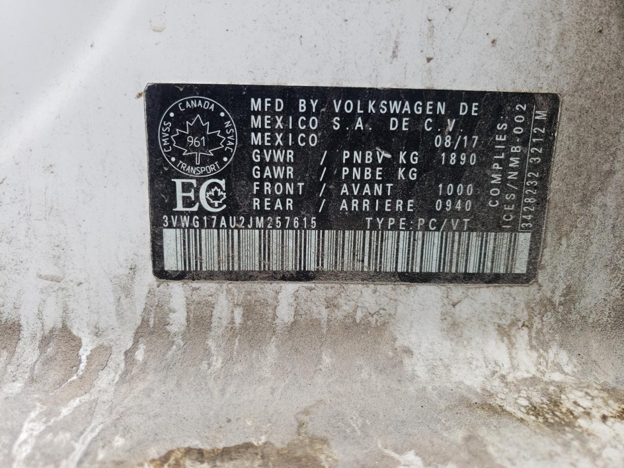 Колір БілийЦиліндри 4VIN 3VWG17AU2JM257615Стан Заводиться та їде (перевірено)Ушкодження З боків