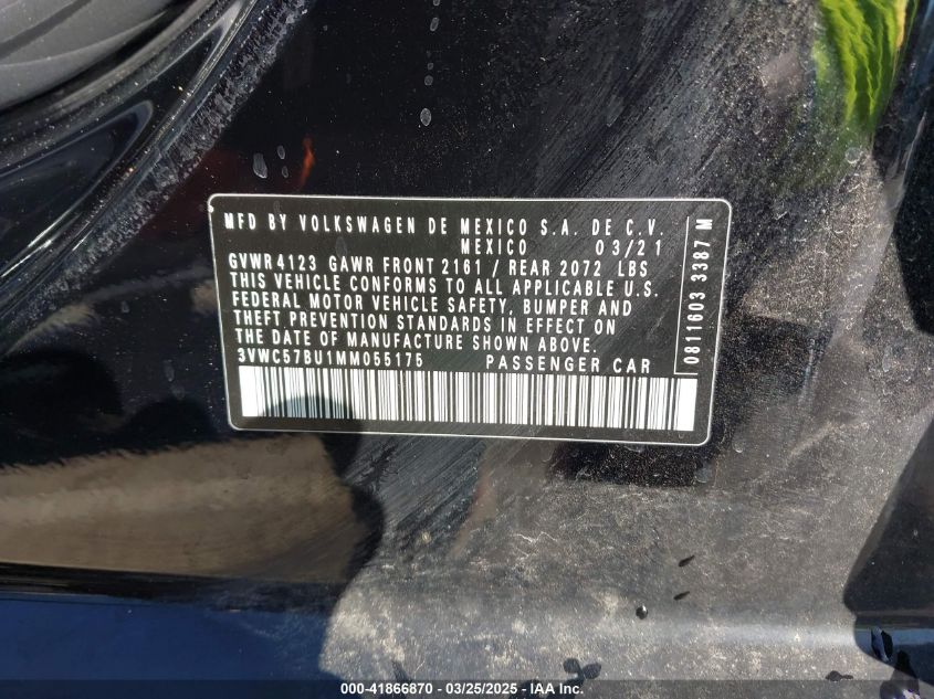 VOLKSWAGEN JETTA 1.4 2021 р.в., Передній привід (3VWC57BU1MM055175) з США