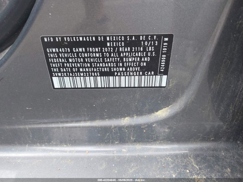 VOLKSWAGEN JETTA 2.0 2014 р.в., Передній привід (3VW2K7AJ3EM227865) з США