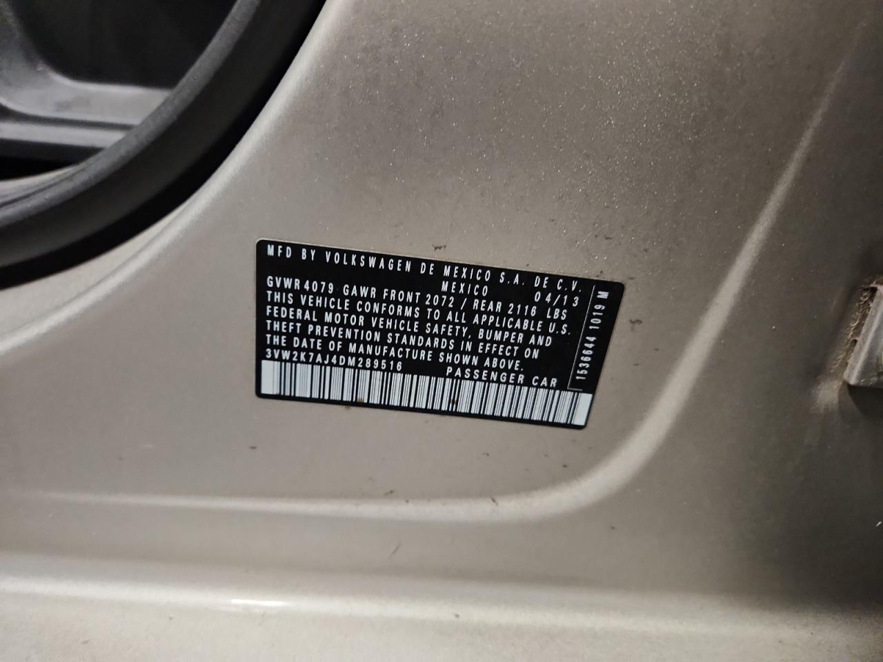 Колір ЗагарЦиліндри 4VIN 3VW2K7AJ4DM289516Стан ЗаводитьсяУшкодження Передня або задняДата аукціону 2025-11-03