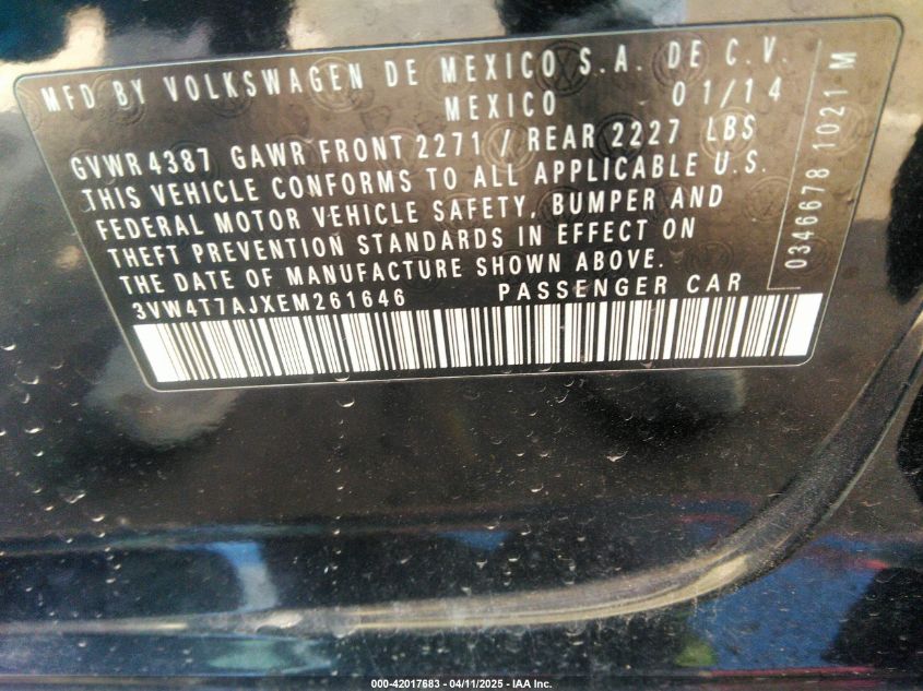 VOLKSWAGEN JETTA 2.0 2014 р.в., Передній привід (3VW4T7AJXEM261646) з США