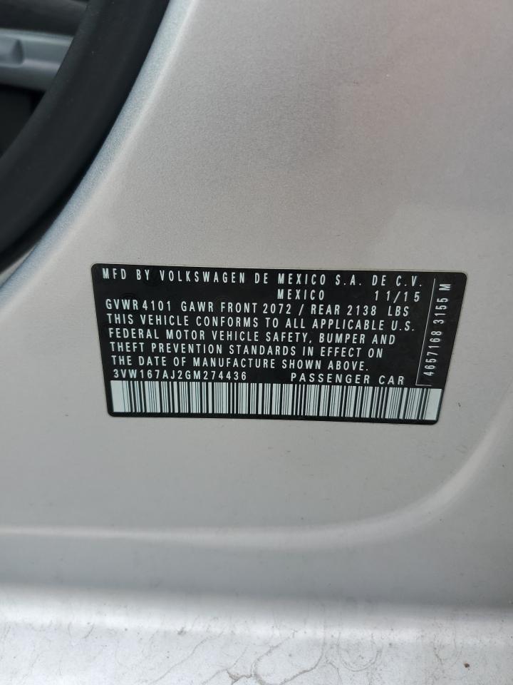 VOLKSWAGEN JETTA 1.4 2016 р.в., (3VW167AJ2GM274436) з США