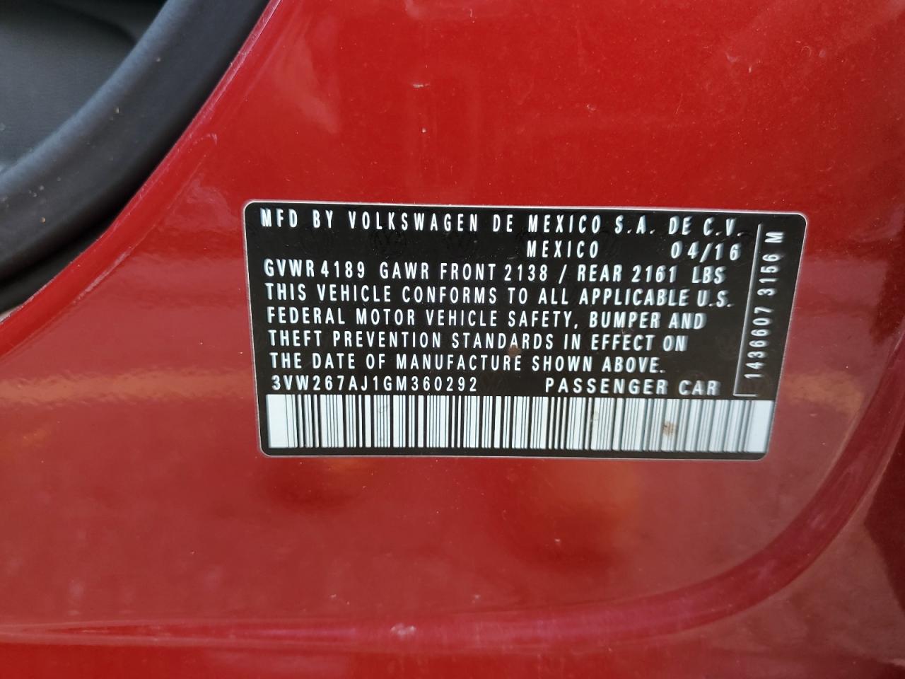 Колір ЧервонийЦиліндри 4VIN 3VW267AJ1GM360292Стан НевідомоУшкодження Передня або задня