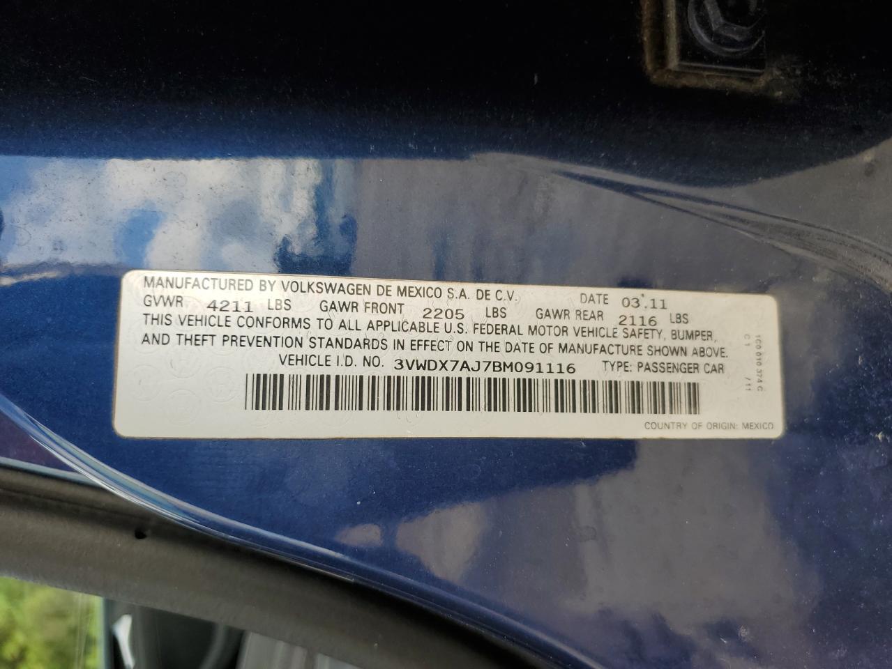 Колір СинійЦиліндри 5VIN 3VWDX7AJ7BM091116Стан Заводиться та їде (перевірено)Ушкодження Передня або задняДата аукціону 2025-11-04