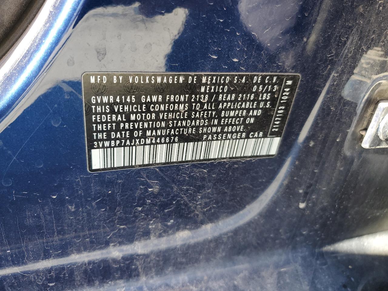 Колір СинійЦиліндри 5VIN 3VWBP7AJXDM446676Стан Заводиться та їде (перевірено)Ушкодження Передня або задня