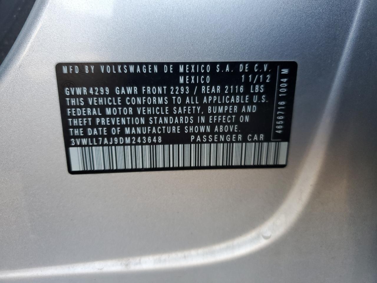 VOLKSWAGEN JETTA 2.0 2013 р.в., (3VWLL7AJ9DM243648) з США