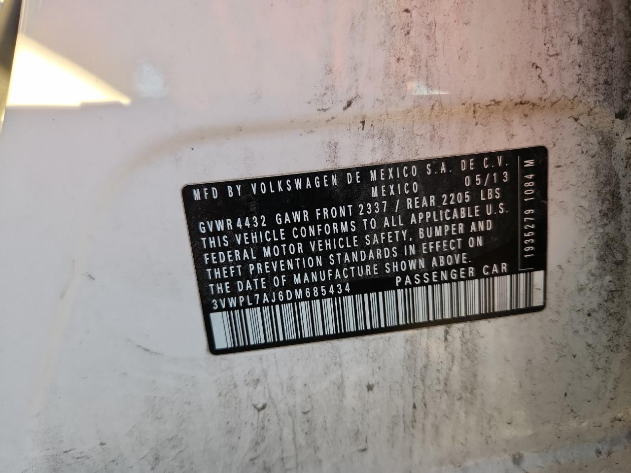 Колір БілийЦиліндри 4VIN 3VWPL7AJ6DM685434Стан НевідомоУшкодження Передня або задня