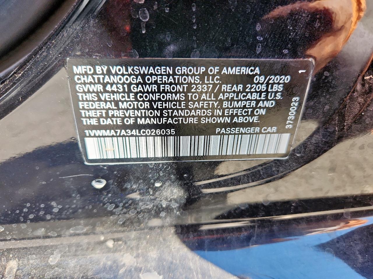VOLKSWAGEN PASSAT 2.0 2020 р.в., (1VWMA7A34LC026035) з США
