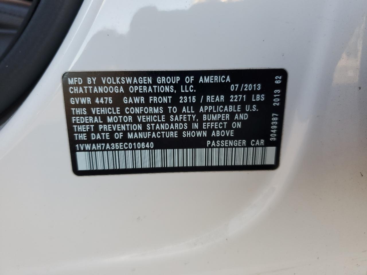 2014 VOLKSWAGEN PASSAT S