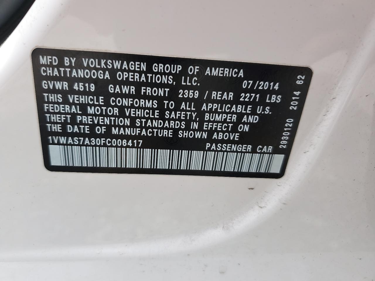 VOLKSWAGEN PASSAT 1.8 2015 р.в., (1VWAS7A30FC006417) з США