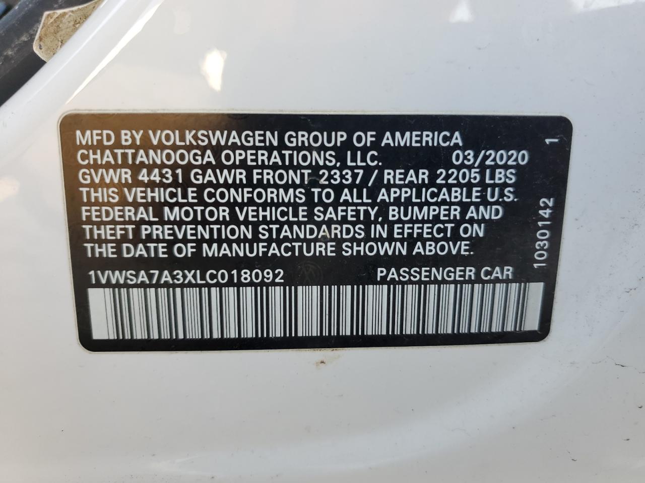 VOLKSWAGEN PASSAT 2.0 2020 р.в., (1VWSA7A3XLC018092) з США