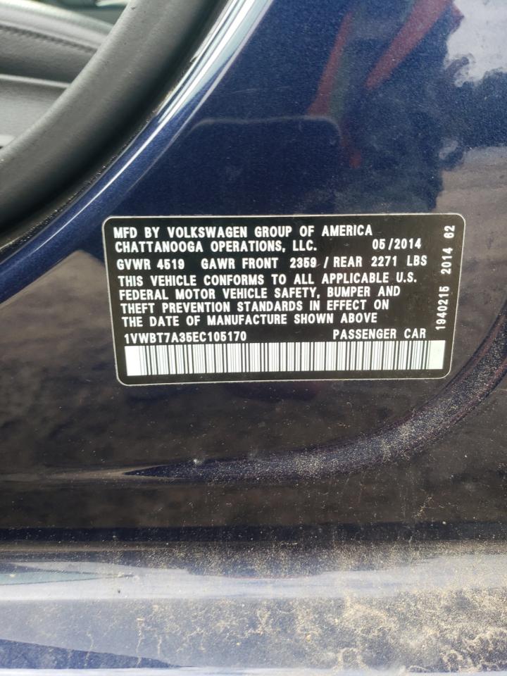 VOLKSWAGEN PASSAT 1.8 2014 р.в., (1VWBT7A35EC105170) з США