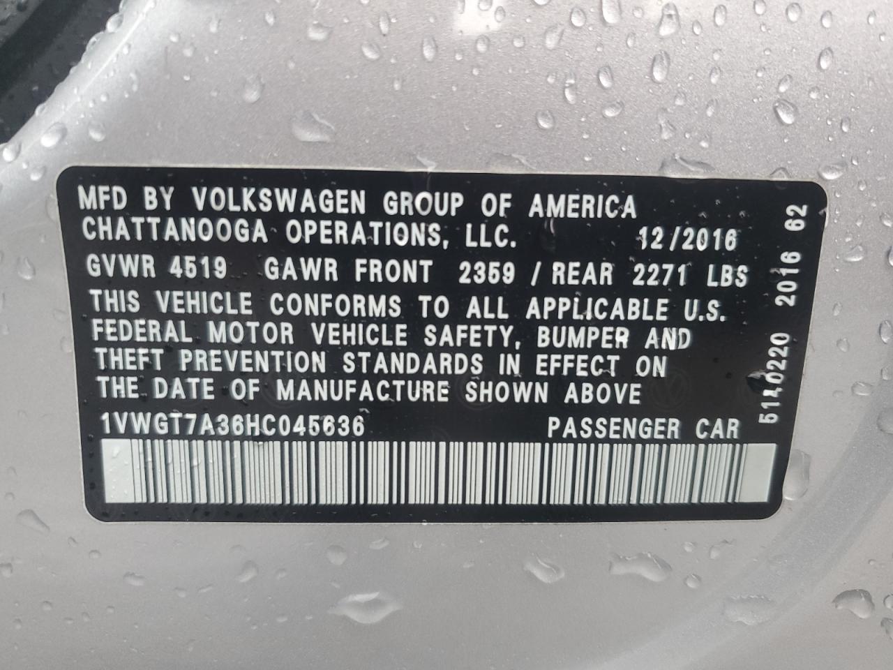 VOLKSWAGEN PASSAT 1.8 2017 р.в., (1VWGT7A36HC045636) з США