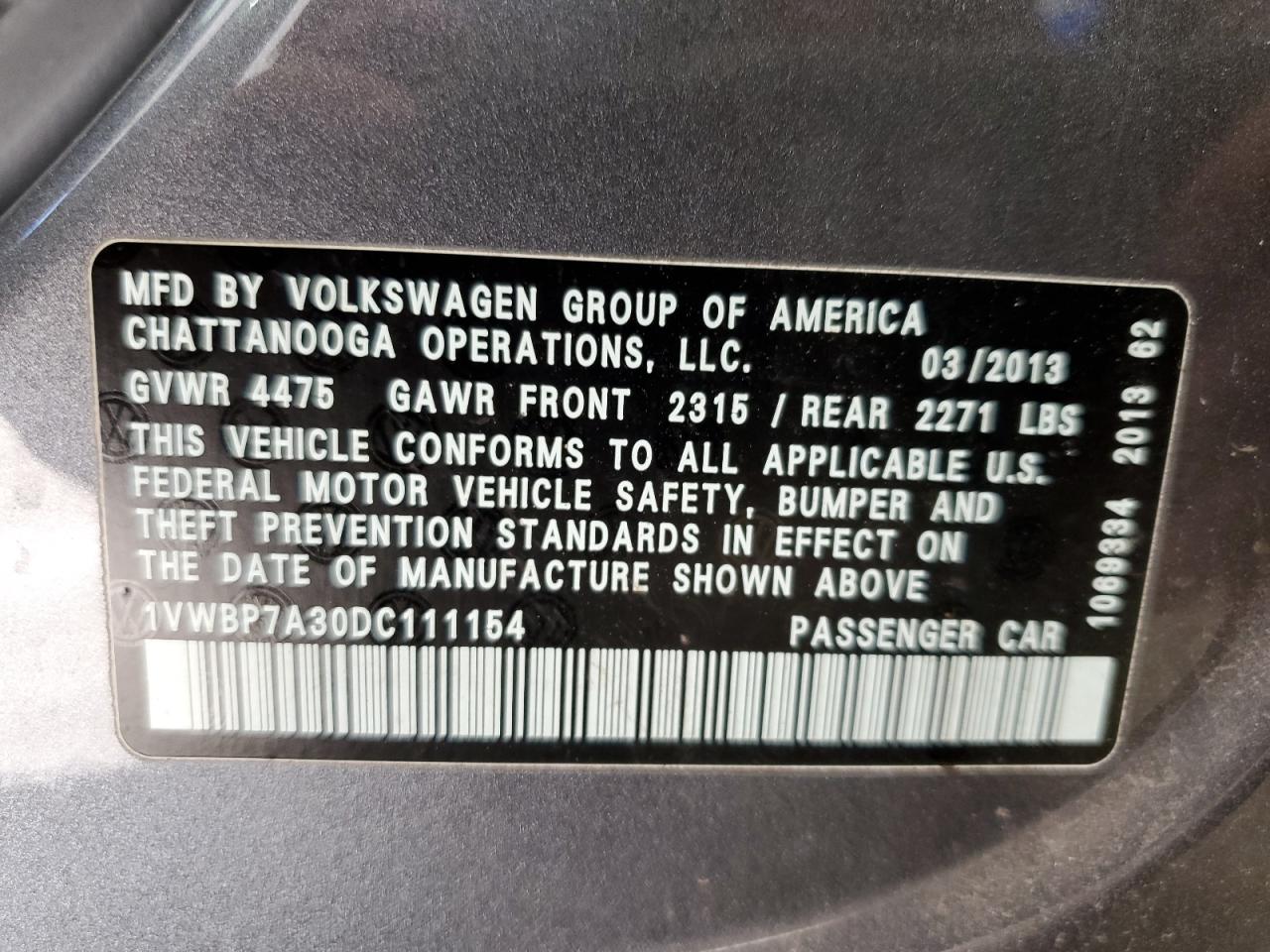 2013 VOLKSWAGEN PASSAT SE