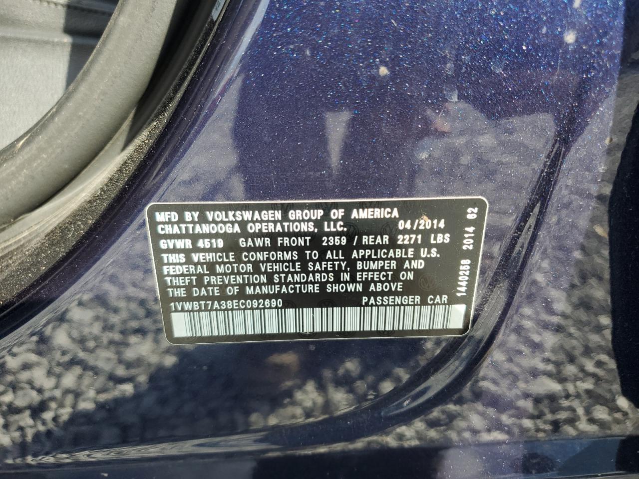 VOLKSWAGEN PASSAT 1.8 2014 р.в., (1VWBT7A38EC092690) з США