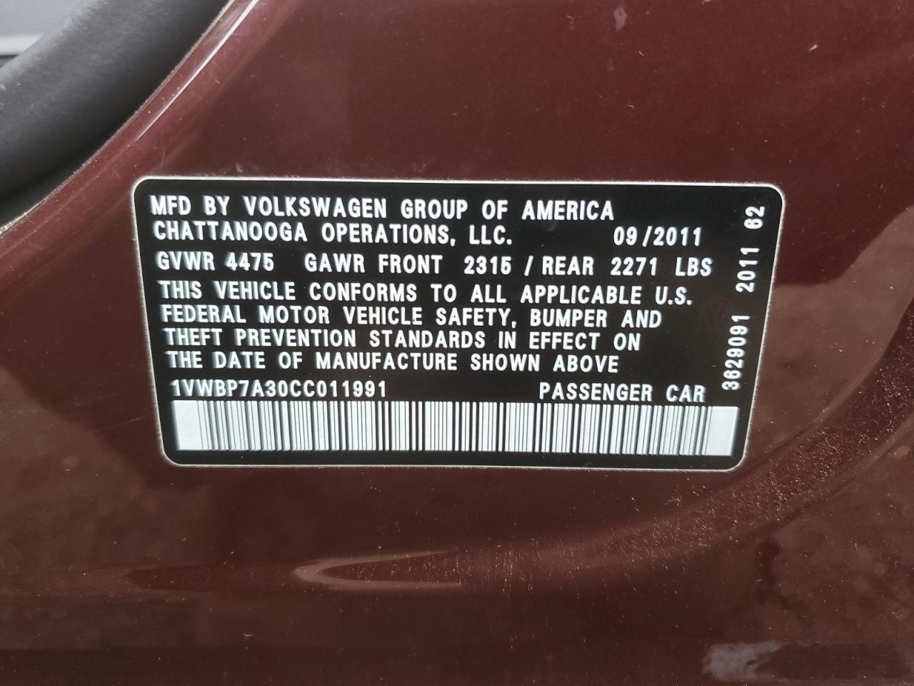 2012 VOLKSWAGEN PASSAT SEL