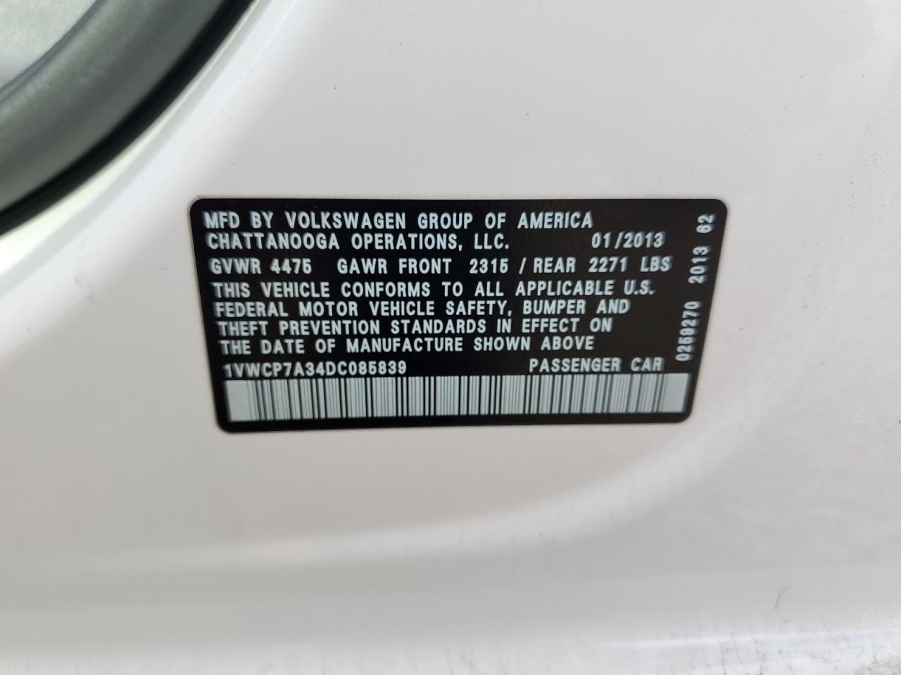 VOLKSWAGEN PASSAT 2.5 2013 р.в., (1VWCP7A34DC085839) з США