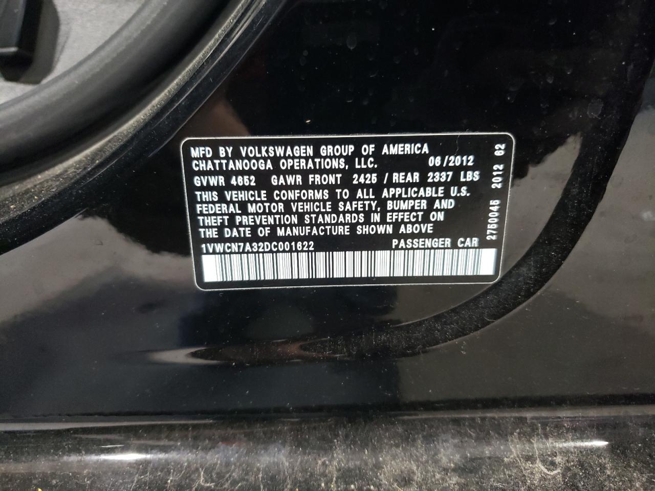 VOLKSWAGEN PASSAT 2.0 2013 р.в., (1VWCN7A32DC001622) з США