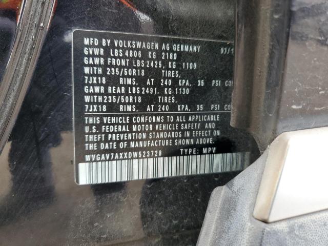 Колір ЧорнийЦиліндри 4VIN WVGAV7AXXDW523728Стан НевідомоУшкодження Передня або задня