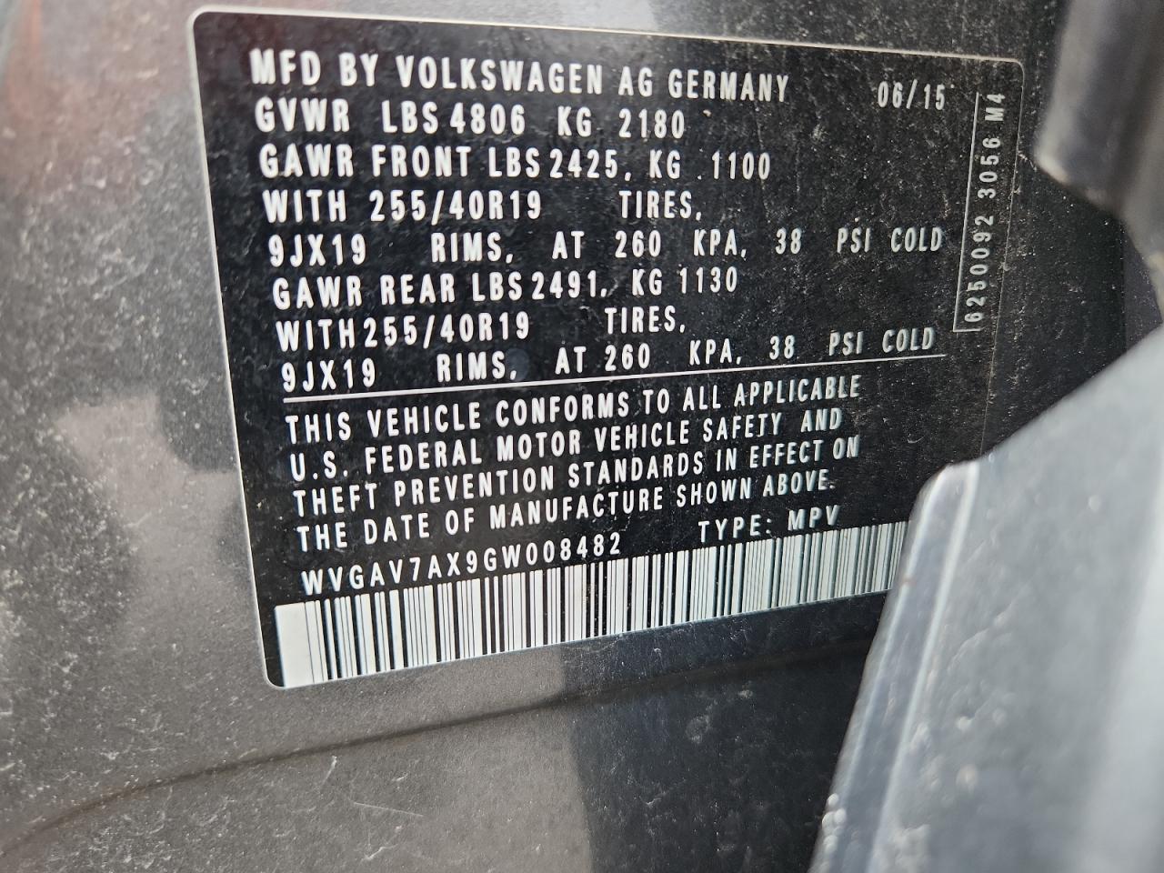 Колір СірийЦиліндри 4VIN WVGAV7AX9GW008482Стан НевідомоУшкодження НезначніДата аукціону 2025-11-04
