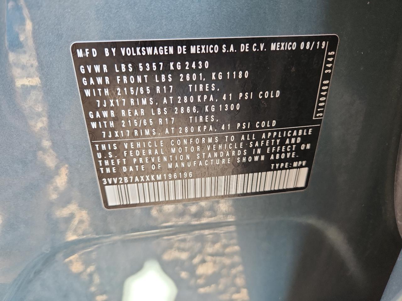 VOLKSWAGEN TIGUAN 2.0 2019 р.в., Повний привід (3VV2B7AXXKM196196) з США
