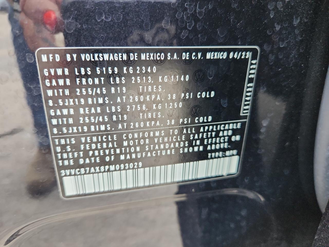VOLKSWAGEN TIGUAN 2.0 2023 р.в., (3VVCB7AX8PM093029) з США