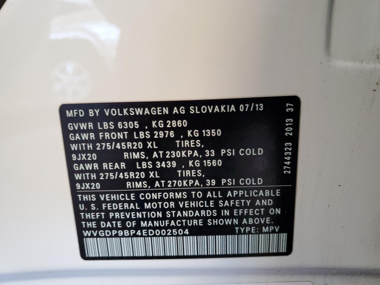 Колір БілийЦиліндри 6Привід Повний привідVIN WVGDP9BP4ED002504Стан Заводиться та їде (перевірено)Ушкодження Передня або задня