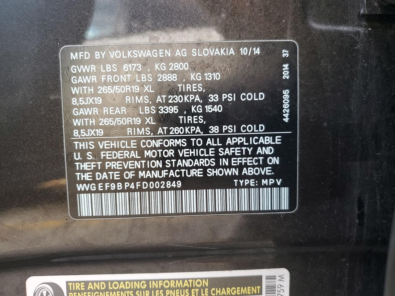 VOLKSWAGEN TOUAREG 3.6 2015 р.в., Повний привід (WVGEF9BP4FD002849) з США