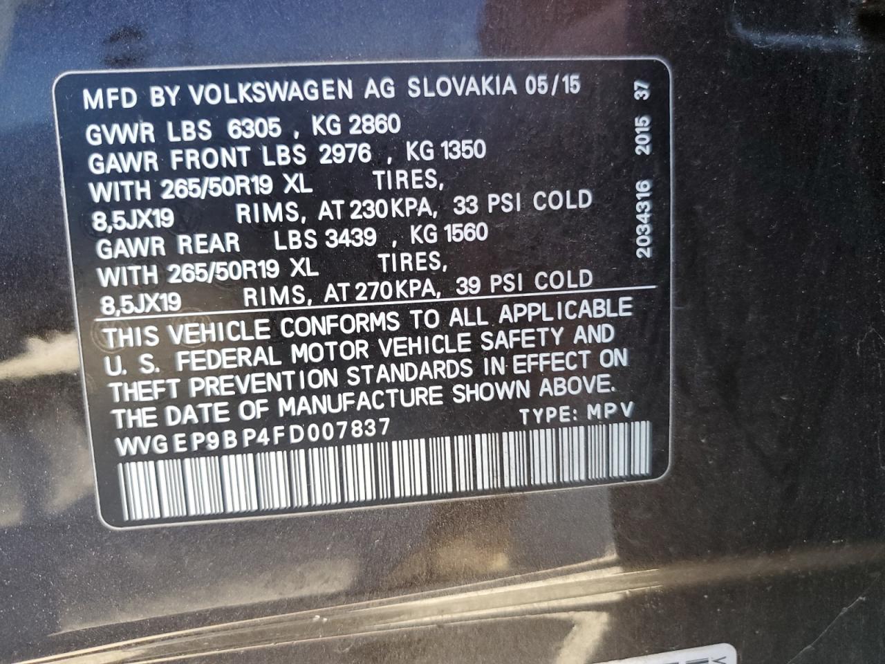 VOLKSWAGEN TOUAREG 3.0 2015 р.в., Повний привід (WVGEP9BP4FD007837) з США