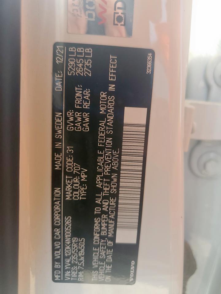 VOLVO XC60 2.0 2022 р.в., (YV4L12DK4N1005265) з США